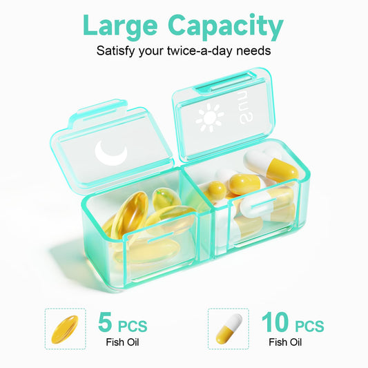 Betife Weekly Pill Organizer 2 Times a Day,7 Day Travel Pill Box,AM/PM Pill case for Vitamins, Medication, Supplements and Fish Oils (Green)