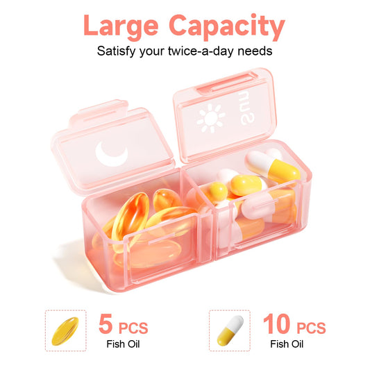 Betife Weekly Pill Organizer 2 Times a Day,7 Day Travel Pill Box,AM/PM pill case for Vitamins, Medication, Supplements and Fish Oils (Pink)