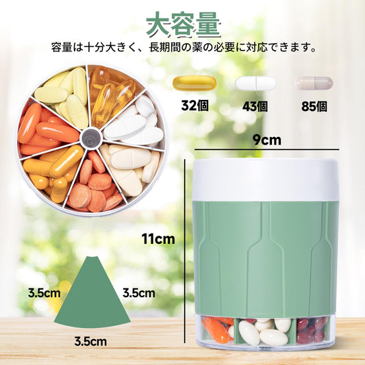 Betife ピルケース 1週間 薬ケース サプリケース 携帯用 サプリメントケース 薬入れ おしゃれ 大容量 飲み忘れ防止(グリーン)