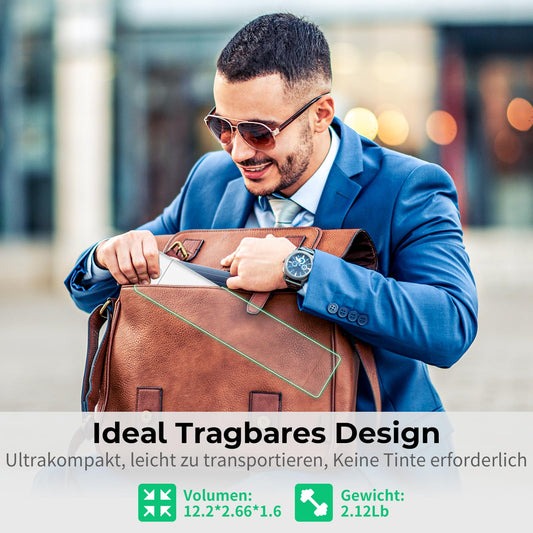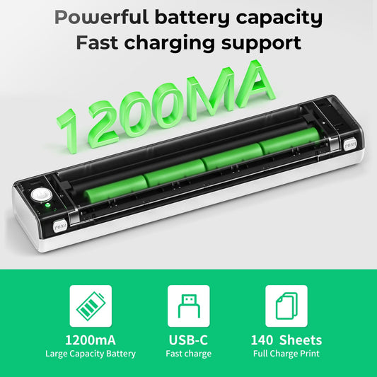 Betife Tragbarer Mobiler Drucker A4 Bluetooth Mini Drucker für die Reise, Kabelloser Thermodrucker ohne patronen unterstützt Thermopapier 210 x 297mm, Kompatibel mit Android iOS Mac (Weiß)