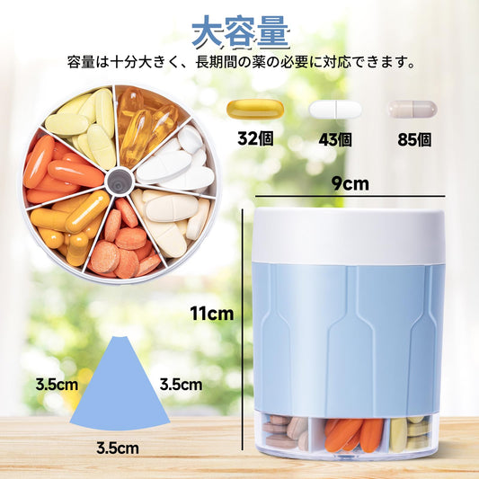 Betife ピルケース 薬ケース 大容量 サプリメントケース 薬入れ サプリケース ラベル付き(シアン)