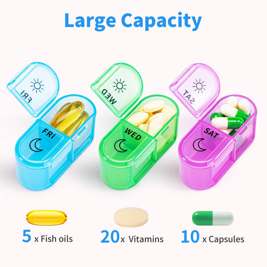 Betife Weekly Pill Organizer 2 Times a Day,7 Day Travel Pill Box,AM/PM Pill case for Vitamins, Medication, Supplements and Fish Oils (White)