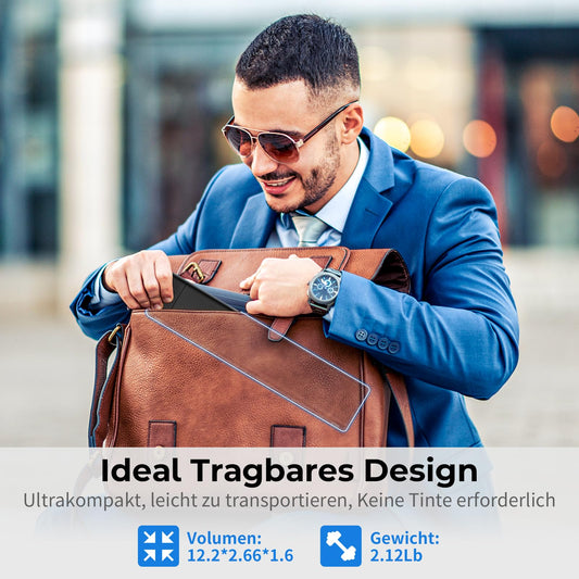 Betife Tragbarer Mobiler Drucker A4 Bluetooth Mini Drucker für die Reise, Kabelloser Thermodrucker ohne patronen unterstützt Thermopapier 210 x 297mm, Kompatibel mit Android iOS Mac (Schwarz)